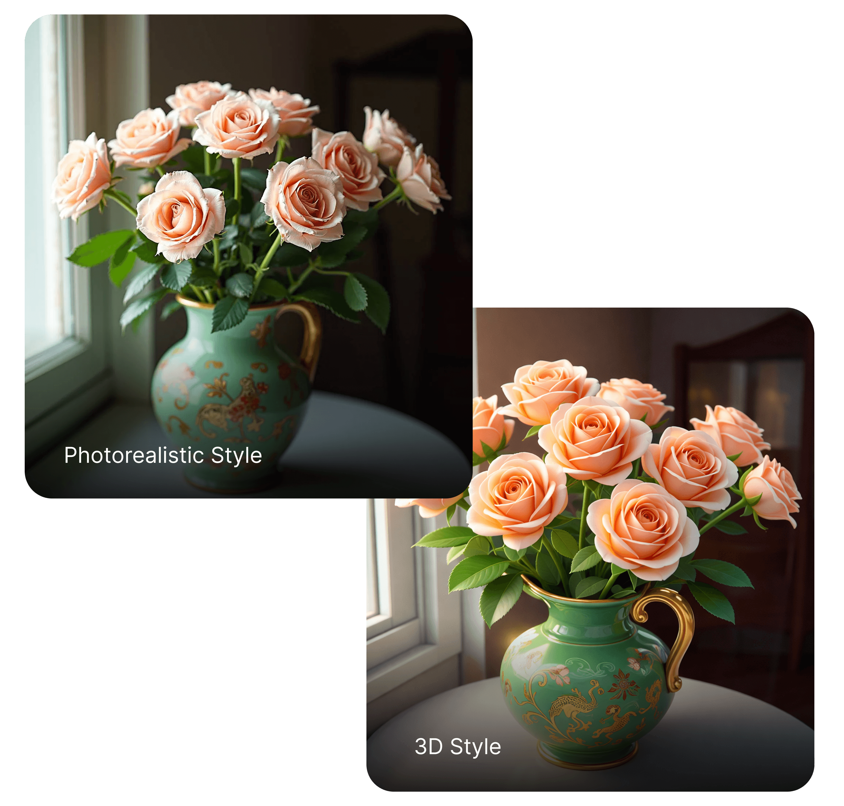 Explore different visual styles with a single prompt. Styles let you quickly adjust the look and feel of your images - from photorealistic to more stylized results - without rewriting your description.